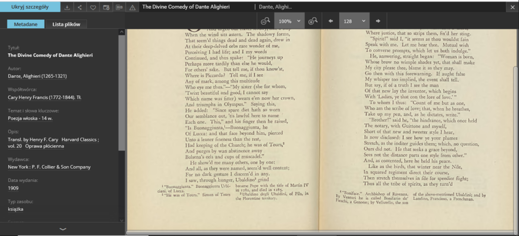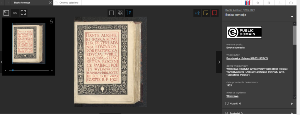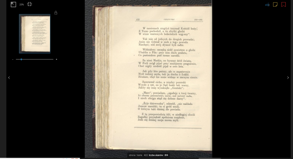 oraz z włoskim tekstem „Boskiej Komedii” Dantego – tu w przekładzie z 2019 roku: