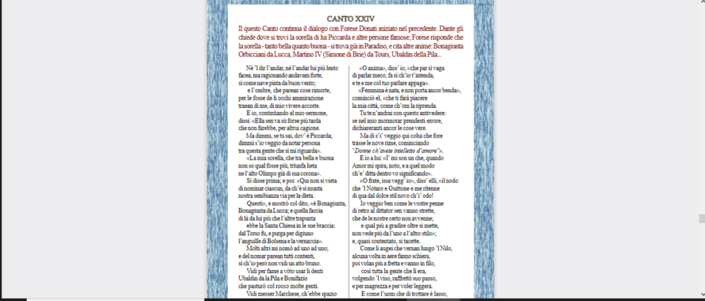 Divina Commedia, Purgatorio; przekład 2019 rok – https://www.pennadautore.it/ebook/autori/Divina%20Commedia%20Purgatorio/1%C2%AA%20parteDivinaCommediaPurgatorio.pdf